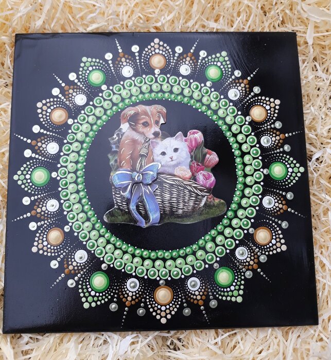 předmět, který chcete dekorovat natřete základní barvou. Jaký podklad zvolíte je v podstatě na vás. Musíte brát zřetel na to, aby tečky byly na podkladu vidět.