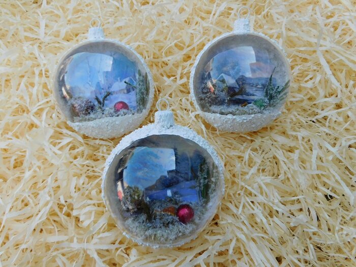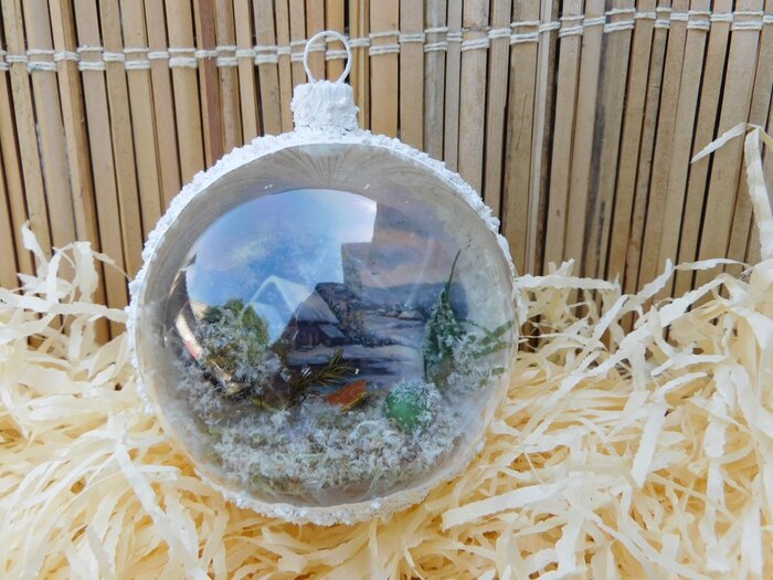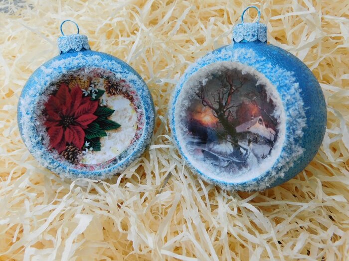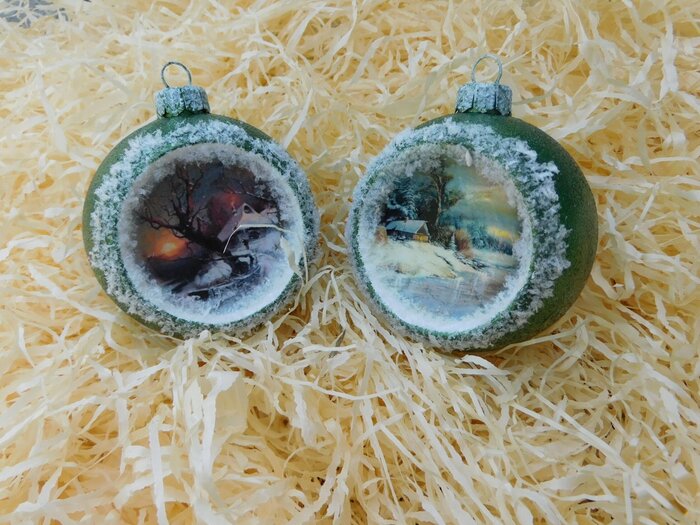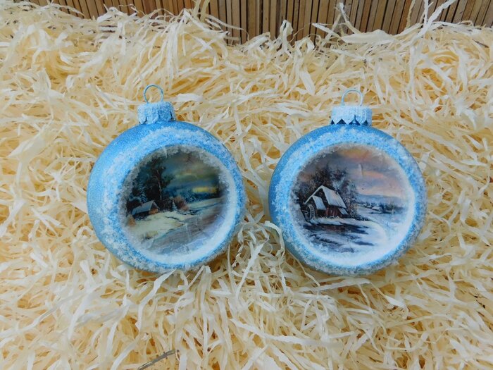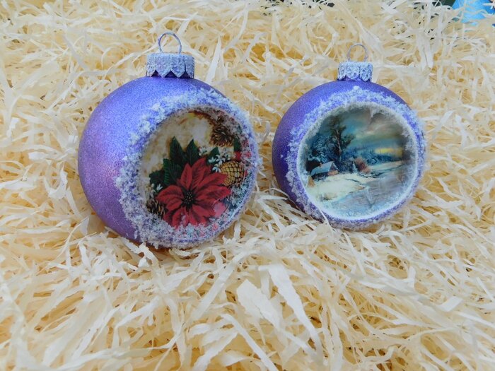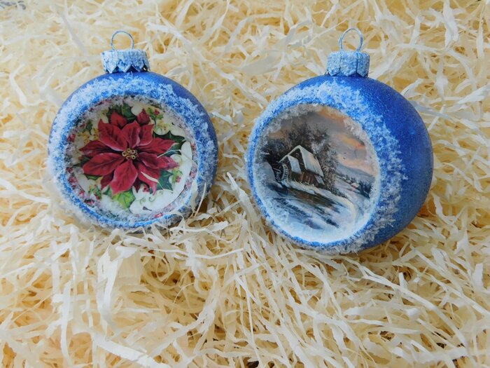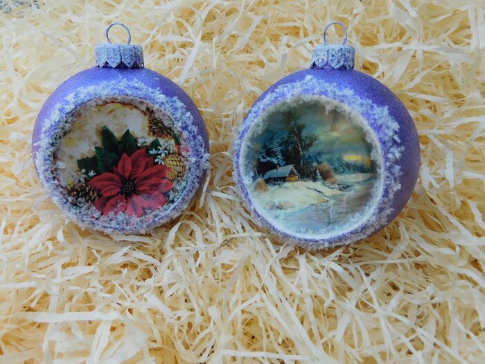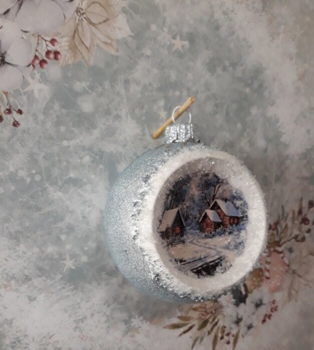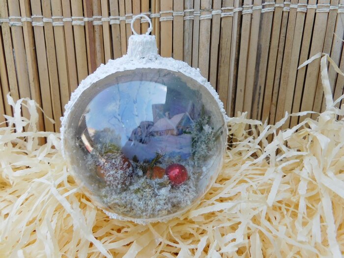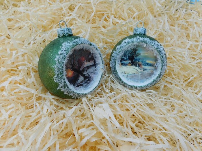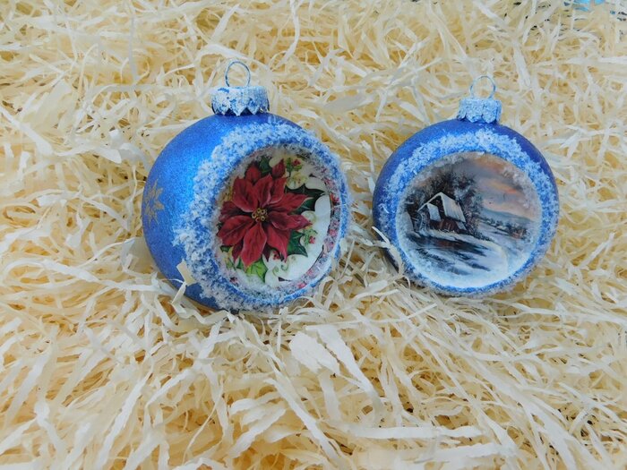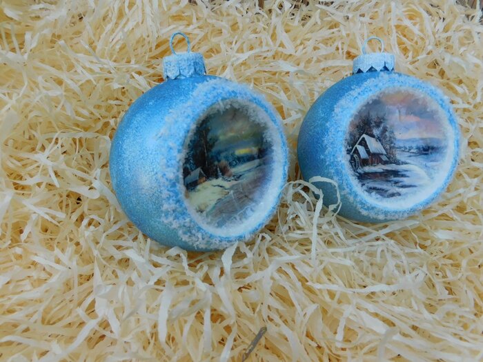 Obrázek se musí vytrhat, aby nebyly rovné okraje a pomalu se nanese na kouli potřenou lepidlem. Je potřeba jemným štětcem, namočeným v lepidle, obrázek uhladit. Vzhledem k tomu, že se obrázek neaplikuje na rovnou plochu, jsou na něm vždy malinké záhyby.