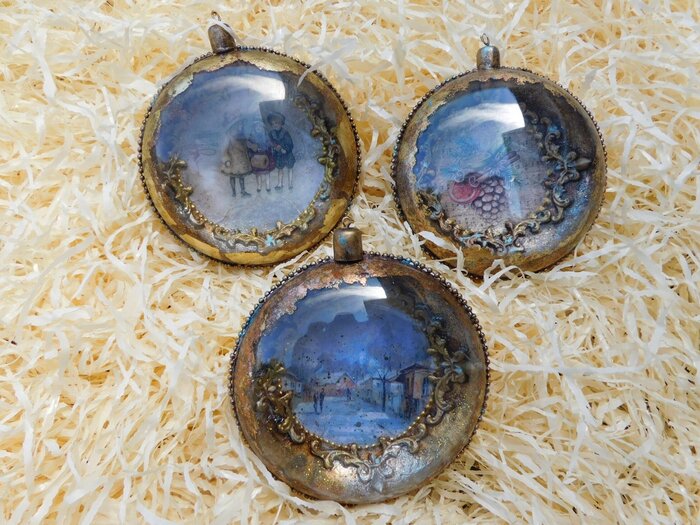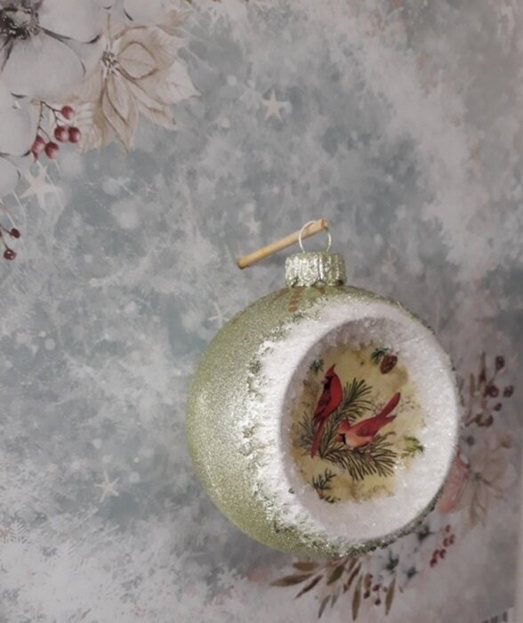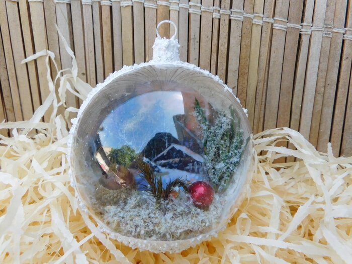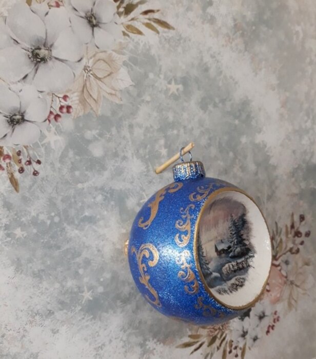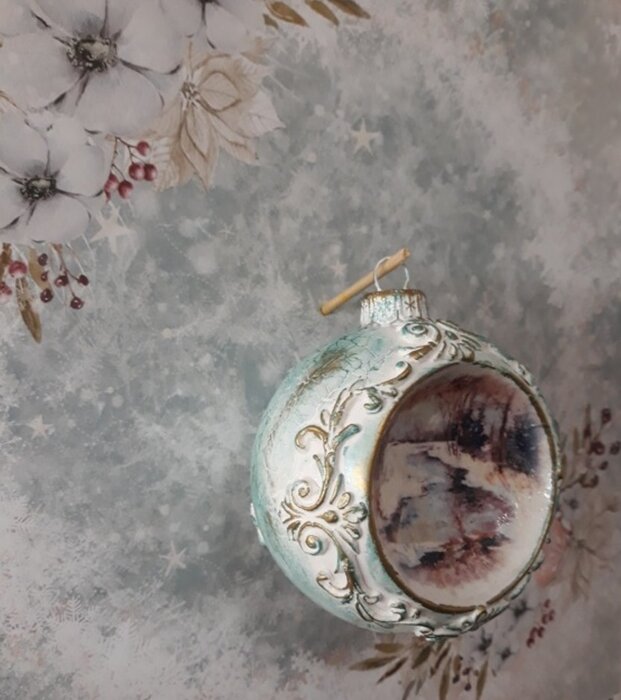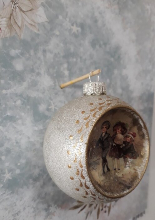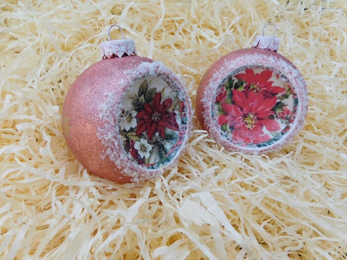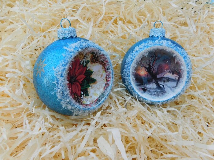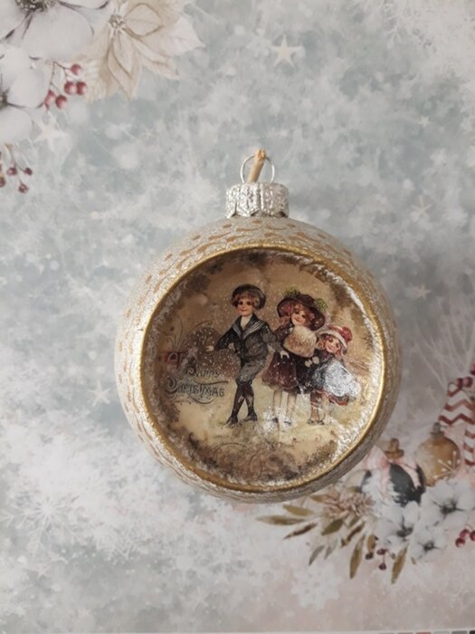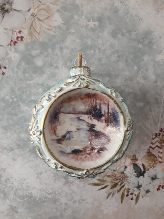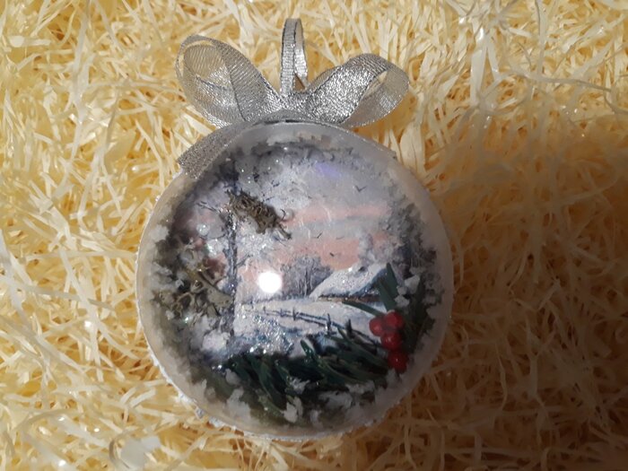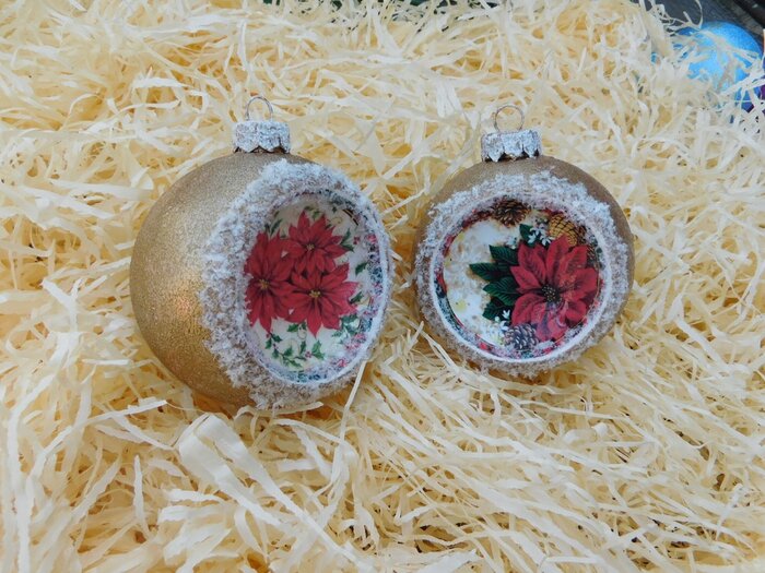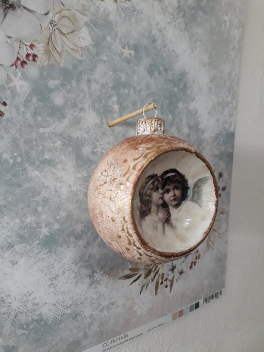 Obrázek se musí vytrhat, aby nebyly rovné okraje a pomalu se nanese na kouli potřenou lepidlem. Je potřeba jemným štětcem, namočeným v lepidle, obrázek uhladit. Vzhledem k tomu, že se obrázek neaplikuje na rovnou plochu, jsou na něm vždy malinké záhyby.