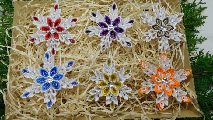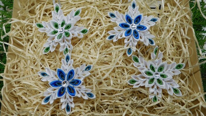 z látky si nastříháme čtverečky, ty se poté skládají do jednostlivých kvítků a posléze slepují do tvarů.