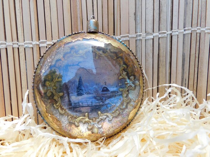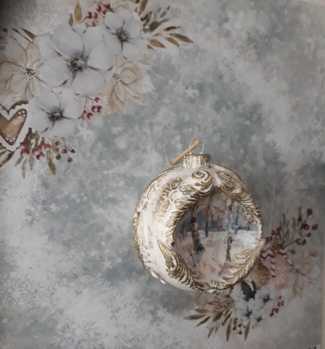 Po zaschnutí jsem použila sněhovou pastu, tou jsem malým štětečkem zvýraznila plochy se sněhem .